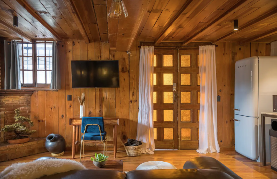 En primer lugar está este loft tipo cabaña que se encuentra a sólo cinco minutos de Santa Fe. Pero que su cercanía con la vida citadina no te engañe, pues en este Airbnb podrás desconectarte de todo al disfrutar de una impresionante vista a las montañas.