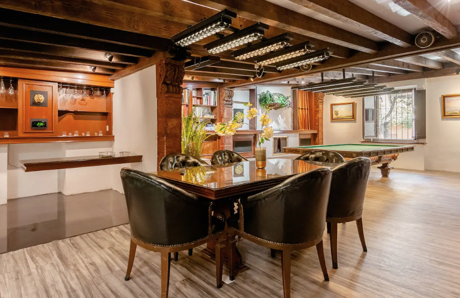 Su diseño rústico con toques decorativos modernos convierte este lugar en el espacio ideal para despejarte de tus actividades diarias y pasar un ameno fin de semana en familia haciendo una carne asada en el patio mientras disfrutan de las hamacas, juegan billar o hacen un picnic en el jardín. También puedes disfrutar de una noche de series y películas, ya que cuenta con una pantalla con Netflix, Disney Plus y Amazon Prime.