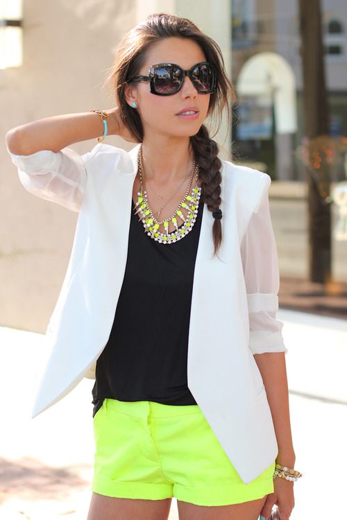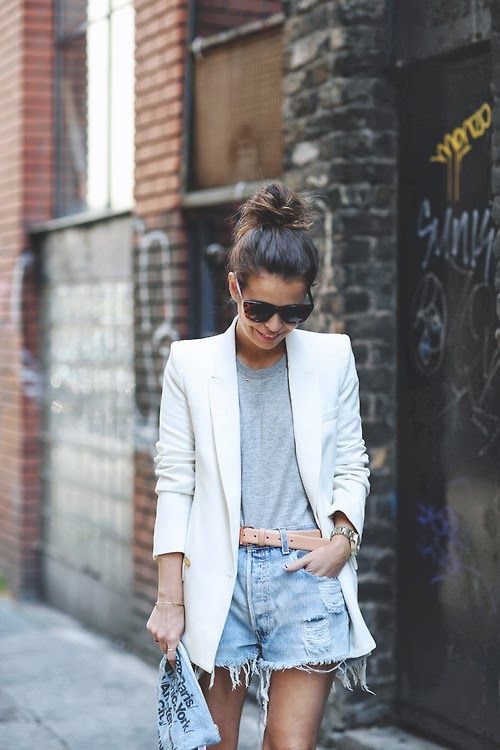 Con shorts: Puedes combinar lo mejor de dos mundos, lo elegante y classy de un blazer con lo casual y cómodo de un short.