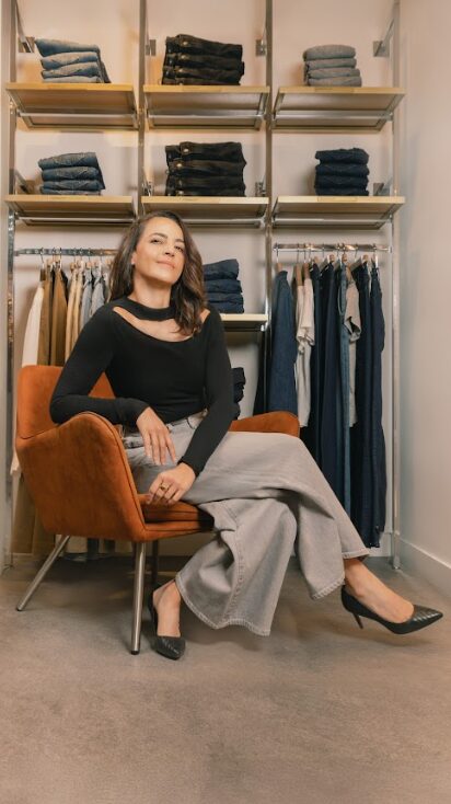 El escenario elegido para este lanzamiento fue la boutique de Vía Santa Fe, que se transformó en el punto de encuentro para un shooting exclusivo donde la moda dialogó con la creatividad, la arquitectura, el arte y el lifestyle. Más que una presentación, fue una invitación a entender la mezclilla como un statement personal.