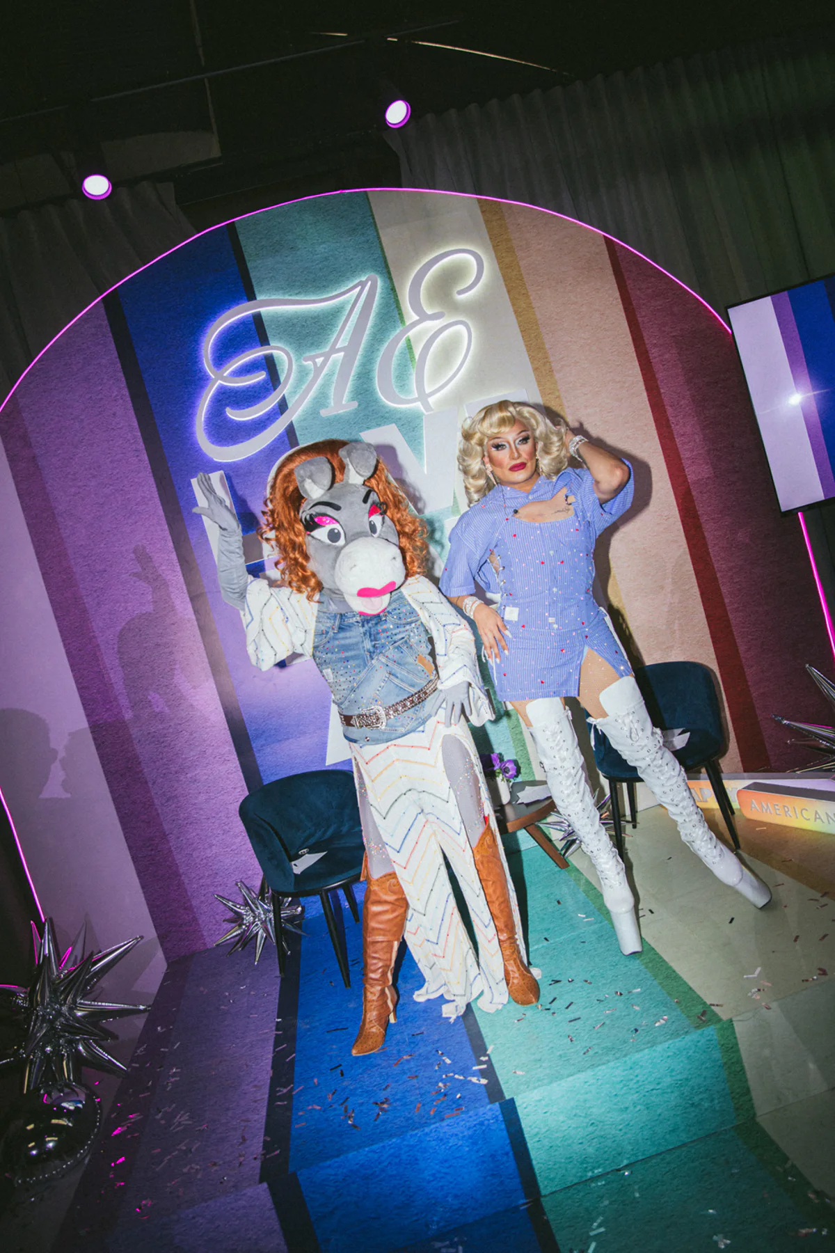 Uno de los momentos más emocionantes fue la pasarela performática liderada por Turbulence y Burrita Burrona, quienes deslumbraron con su carisma mientras modelos e influencers presentaban los looks de la colección AE Love For All. Con siluetas genderless, textiles suaves y cortes pensados para todos los cuerpos, la propuesta celebra que el orgullo también se viste.