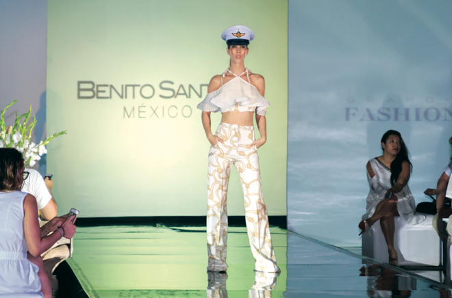 El diseñador Benito Santos presentó, Crucero 20 Grand Velas Fashion Show en la Riviera Nayarit. Editores de moda, celebridades e invitados especiales fueron parte de un acierto más del tapatío, quien con quistó a los presentes con sus diseños y propuestas 100% mexicanas. En Crucero 2017, Benito destaca estampados y elementos clave de la vida naviera como timón, velas, cuerdas y por supuesto sombreros de marinero. Marisol González y Michelle Renaud, fueron una de sus musas, quienes además forman parte de esta nueva campaña. “Traje un fragmento de la colección, la presentaré completa en Finlandia, me llena de orgullo que gente del extranjero esté volteando a ver nuestro trabajo, pero antes iré al Santo Domingo Fashion Week, donde llevaré mi colección Salón México. Después presento Primavera-Verano en México y esa misma colección la llevaré a Puerto Rico en noviembre, así que vienen muchos planes, comentó en exclusiva para EstiloDF. Fue así como la noche llegó a su fin ovacionando al que sin duda es uno de los diseñadores mexicanos del momento.