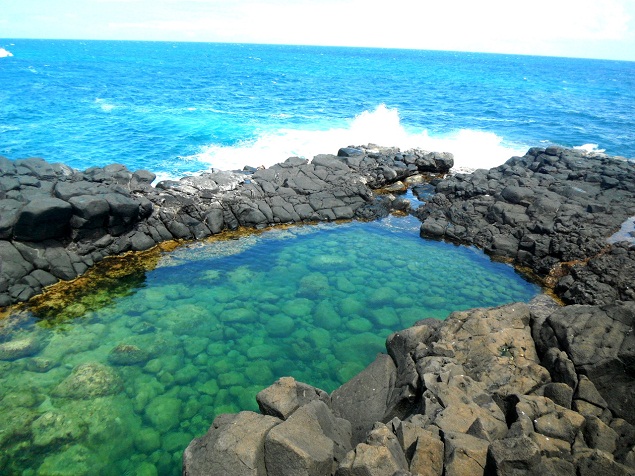 Esta alberca natural solo esta separada por el mar, una fraja de roca. Cuando la marea sube, llena esta piscina con agua fresca.