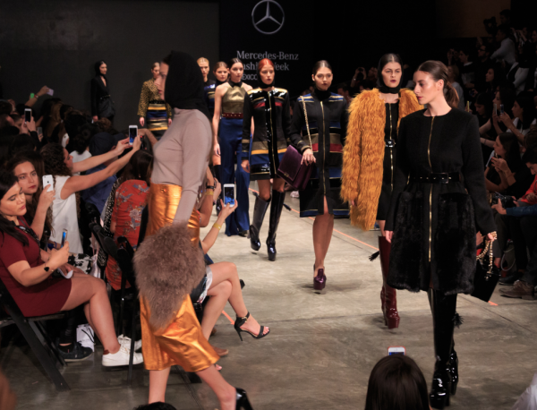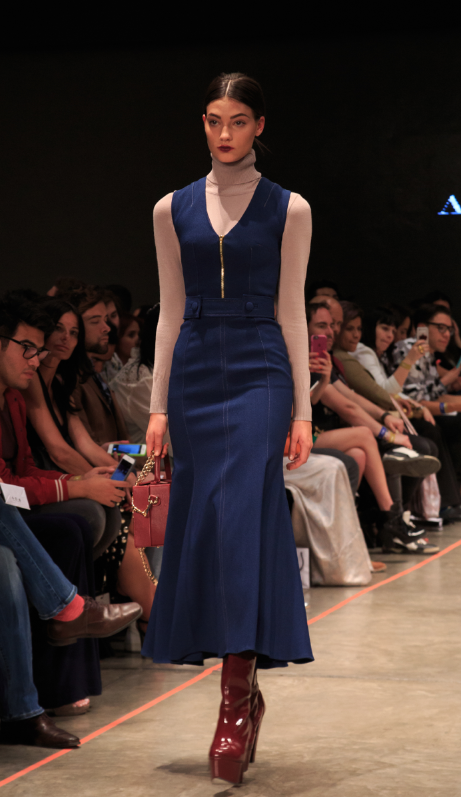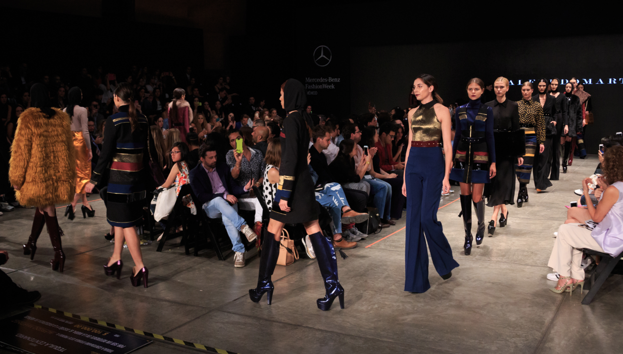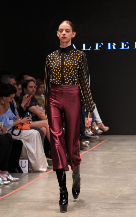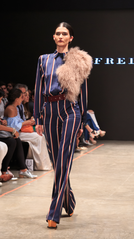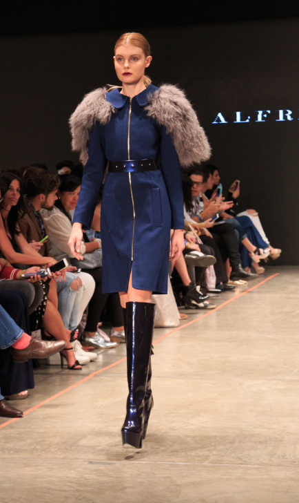 En la pasada noche del martes, Alfredo presentó su colección conformada por culottes, pantalones acampanados, blazers estilo tweed y algo militarizados. Las rayas y bloques de colores son un esencial en su línea. Para la temporada invernal dejó bien claro una cosa: el fur estará en tendencia al máximo.
