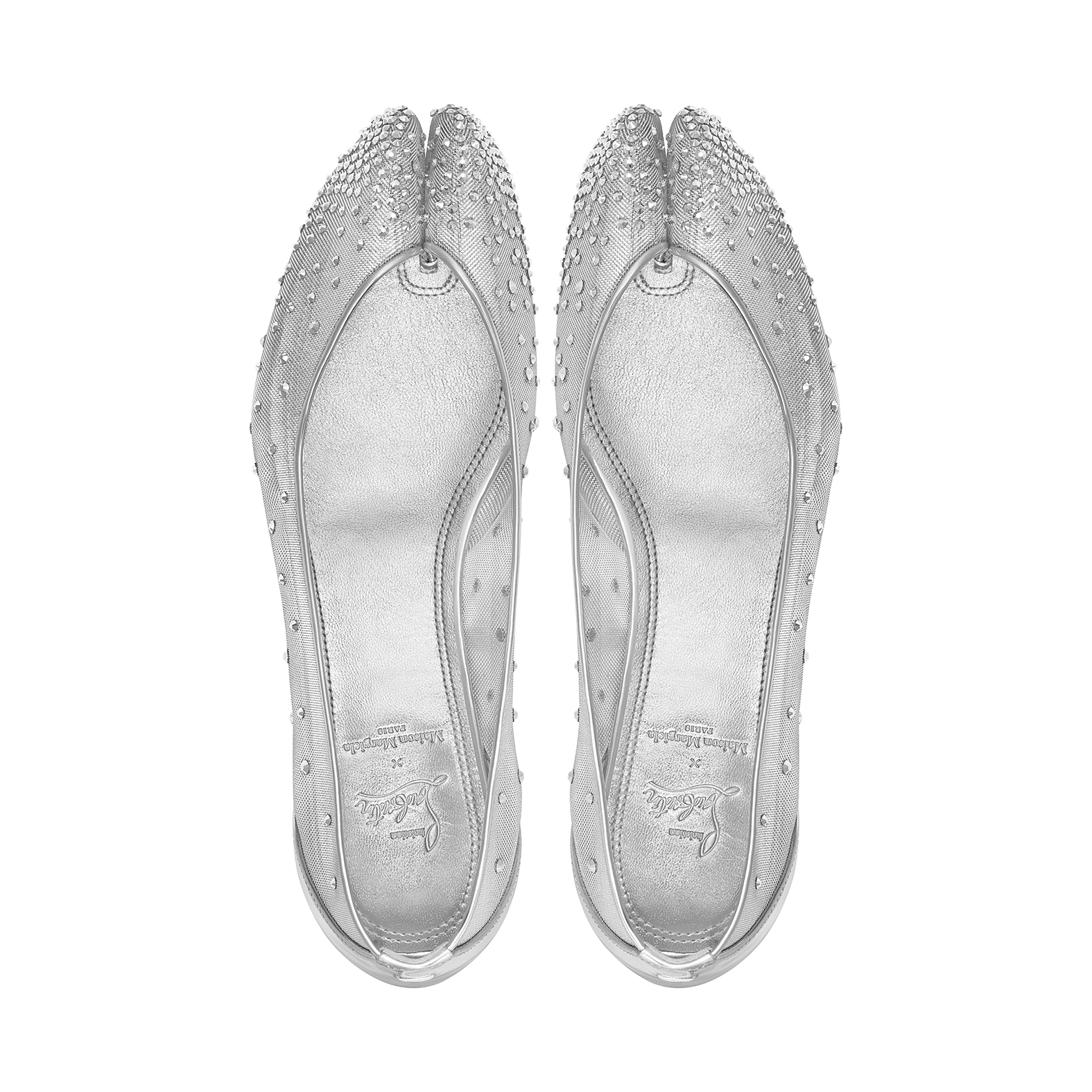 Inspirada en la emblemática Tabi de la Maison, esta cápsula reinterpreta su diseño dividido con la elegancia curvilínea de Louboutin. Compuesta por tres modelos —Bridiela Una Strass, Loubiella y Marlougiela—, destaca por su sensualidad sutil, detalles escultóricos y materiales como malla con cristales hechos a mano o cuero charol en tonos negros, rubor, rojos y plateados. La suela roja inconfundible de Louboutin adorna cada par, elevando su impacto visual.