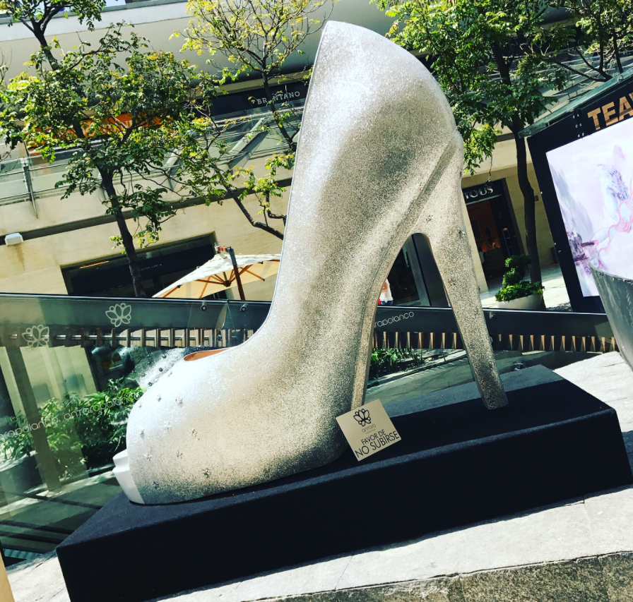 Esta plaza, ubicada en el corazón de Polaco, tiene la costumbre de sorprender a sus visitantes con diferentes esculturas o activaciones, y en esta ocasión le tocó el turno a los tacones más emblemáticos de las firmas más famosas decorar sus pasillos.