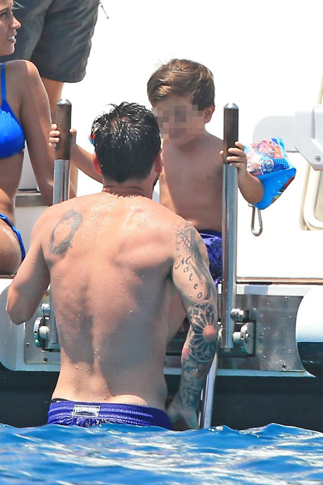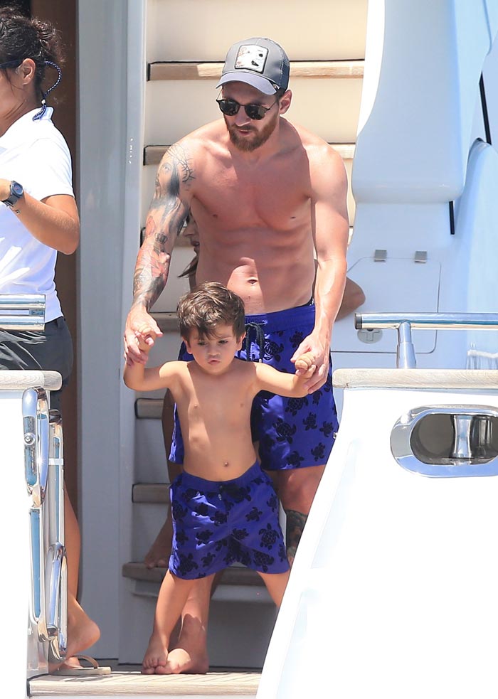 El genio del balón continua con su descanso en Ibiza, junto a su esposa Antonella Roccuzzo, en un espectacular yate y con sus hijos: Thiago de tres años y medio, y Mateo de diez meses, estos últimos con los mismos trajes de baño como su papá.
