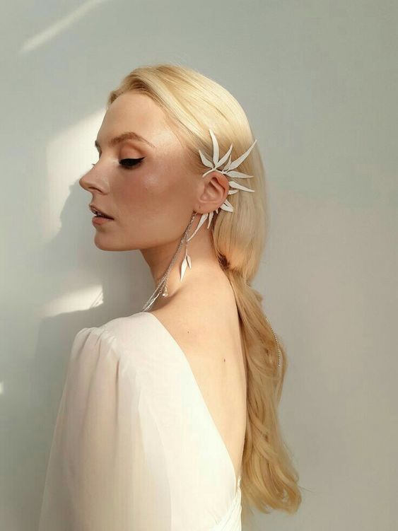 Si tu cuello es largo y la dirección de tus orejas es para atrás, los modelos con caídas largas y más cadenas serán perfectos para ti. Si el diseño es grande y ostentoso puedes optar por el cabello suelto, en cambio, si son detalles muy finos, te recomendamos llevar el cabello recogido para que luzca mucho más.