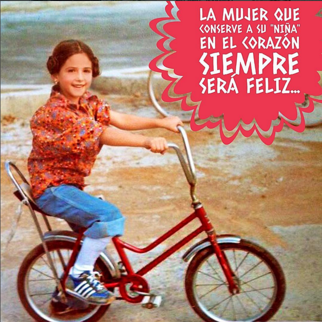 La conductora de 44 años no sólo compartió con sus seguidores una foto al lado de su esposo Erik Rubín y sus hijas Mía y Nina, sino que además recordó su infancia con una foto en la que aparece en una bicicleta.