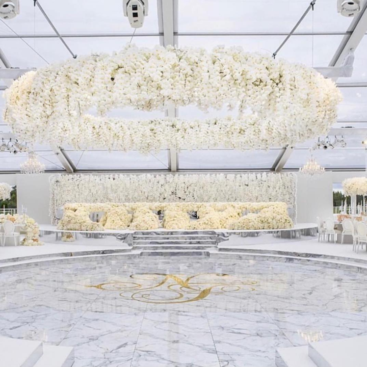 El diseño floral fue de Jeff Leatham, el cual ha trabajado con el clan Kardashian-Jenner y Oprah. De igual forma, la novia tuvo varios cambios de ropa durante la celebración.