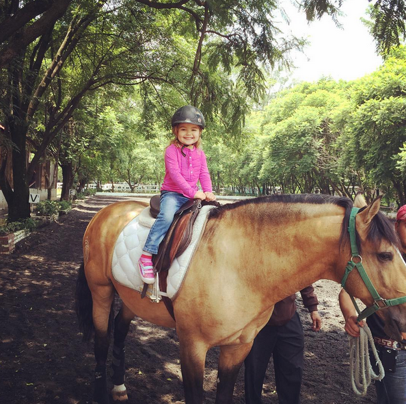 Elena tiene tres añitos y ha crecido como toda una princesa, pues tiene una larga cabellera rubia y quebrada que enmarca su hermosa carita, tiene la sonrisa y carisma de su madre y la seguridad de su padre. Y aunque pareciera que pareciera que aún es una bebé, ya juega boliche junto a su familia, monta a caballo y baila todo el tiempo que puede.