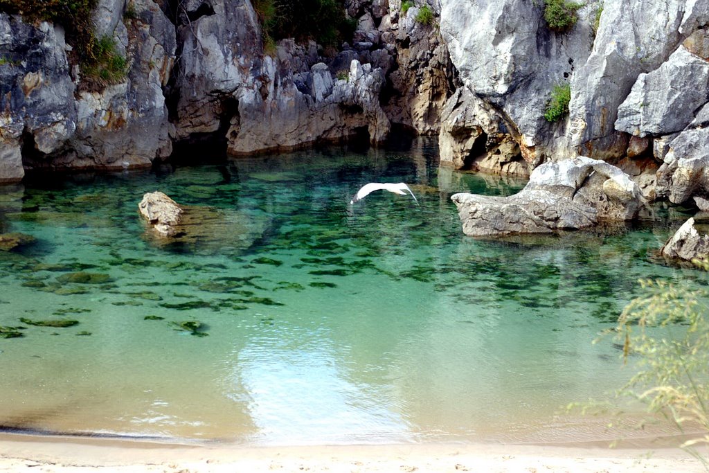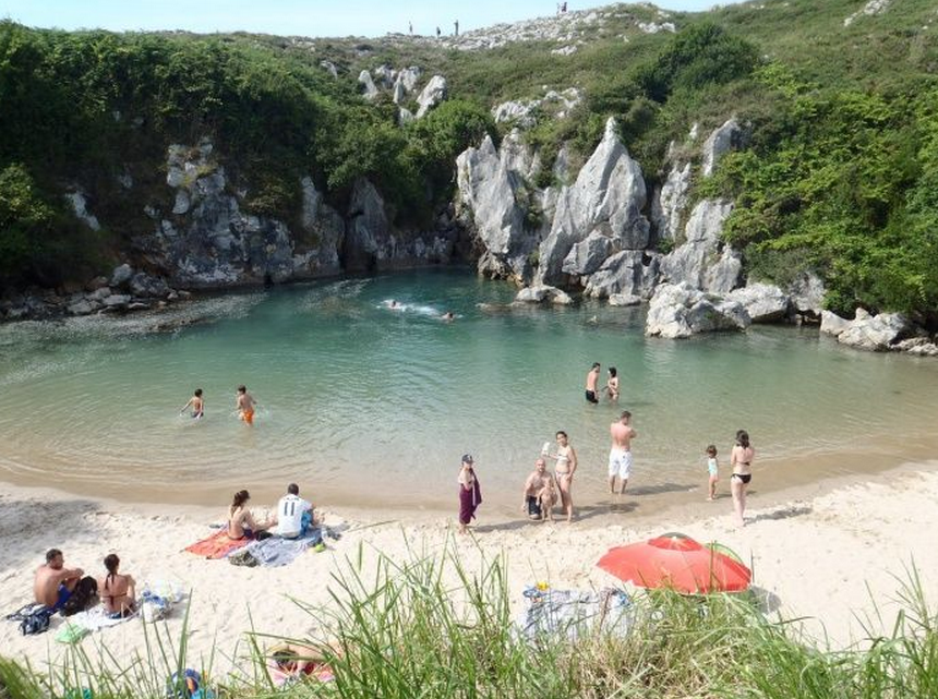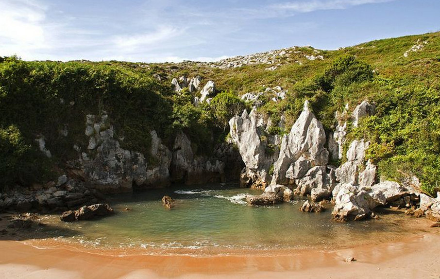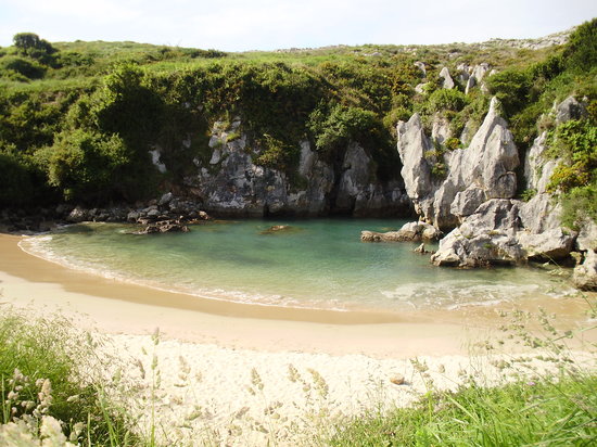 Ubicada entre la costa de Llanes y Ribadesella, en Austrias, España, esta diminuta pero increíble playa cuenta con arena sumamente fina y, aunque su acceso es fácil, lo difícil es encontrarlo, ya que sólo se puede ingresar caminando desde una playa llamada San Antolín o el pueblo Naves. Este aislamiento es lo que ha permitido una perfecta conservación de tan hermoso paisaje.