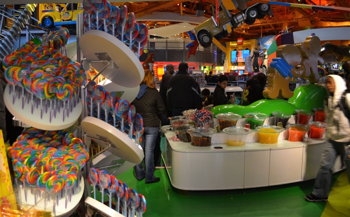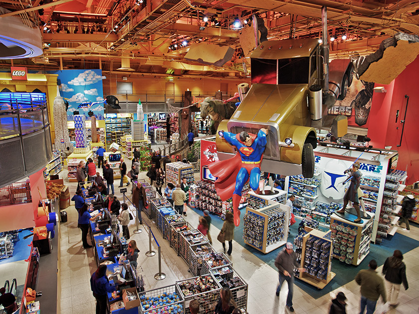 Todas las marcas y juguetes que puedas imaginar están ahí; y es que la enorme tienda se divide en secciones, como La casa de Barbie, El Mundo de Star Wars, La Liga de la Justicia, Candyland, Legoland y Transformers, por mencionar sólo algunos, en los que encontraras tanta variedad de juguetes, disfraces, libros, dulces y hasta ropa… ¡Que no sabrás cuál escoger!