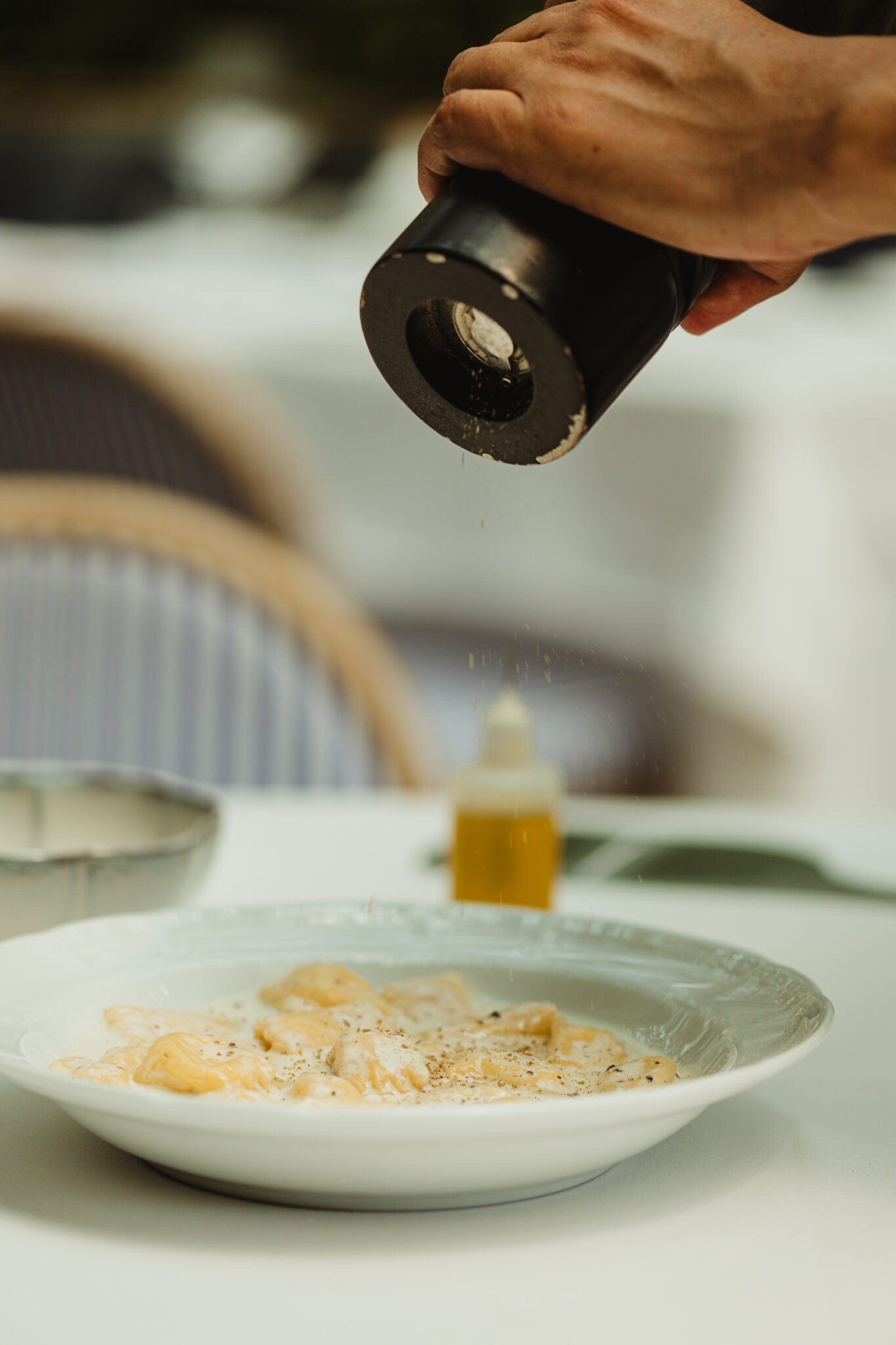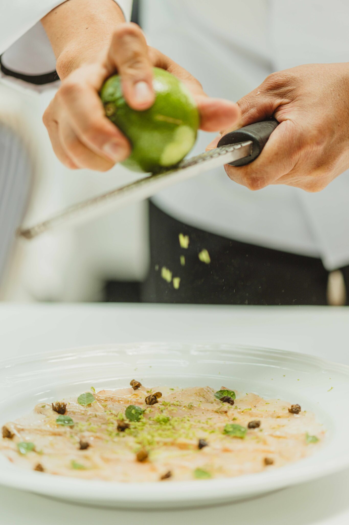 El menú diseñado por el equipo internacional de chefs exalta la cocina mediterránea con ingredientes de excelencia y un guiño a sabores locales. Entre sus imperdibles destacan el tartar de atún con vinagreta de chile manzano, el carpaccio de res black angus con trufa de temporada, el pulpo confitado con cítricos y pastas como los fettuccine con trufa preparados en rueda de parmesano madurado.