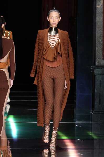 Las texturas de Balmain como los olanes, el cuero, y el ante volvieron a crear un look psicodélico, hipnotizante y muy glamouroso.