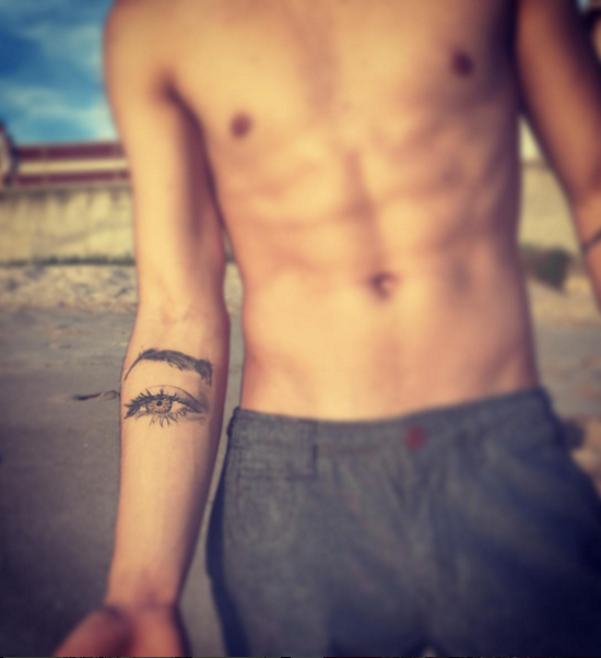 «Feliz de que estés aquí», comentó Bárbara en una de las fotografías que subió a su cuenta de Instagram donde se muestra el torso de su hijo y su antebrazo con el característico tatuaje del ojo de Mori.