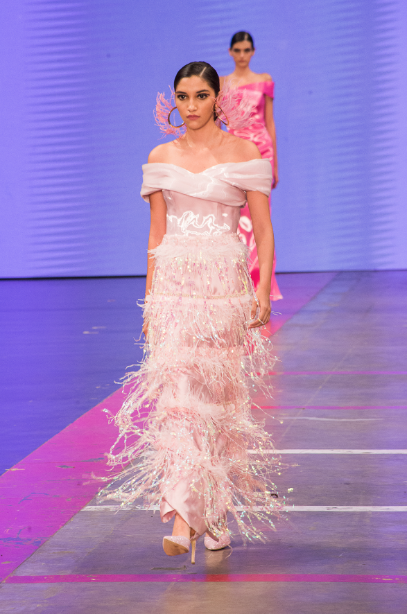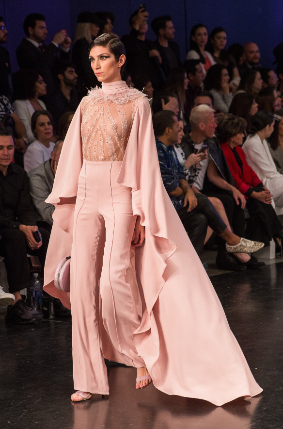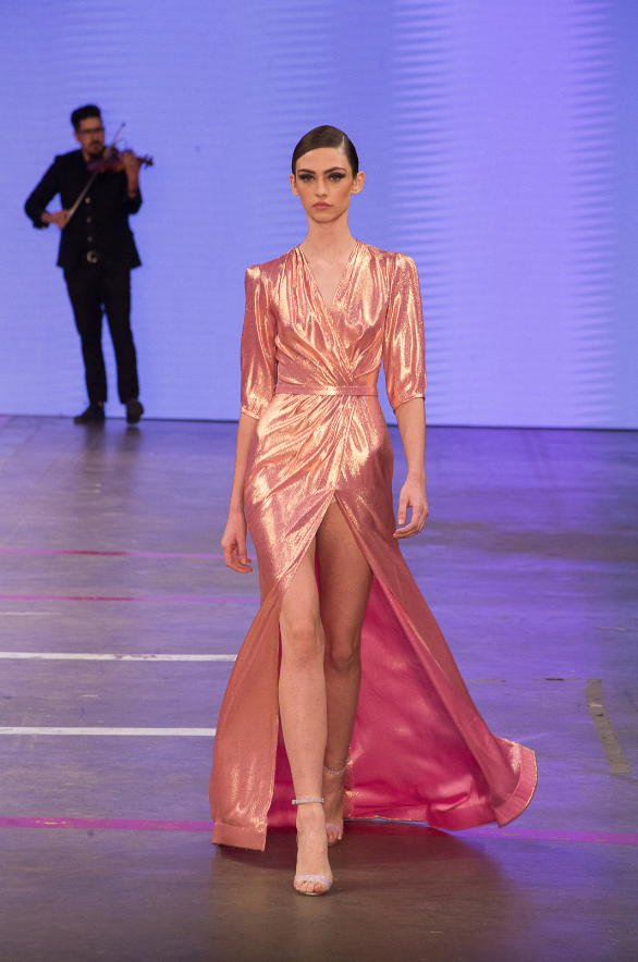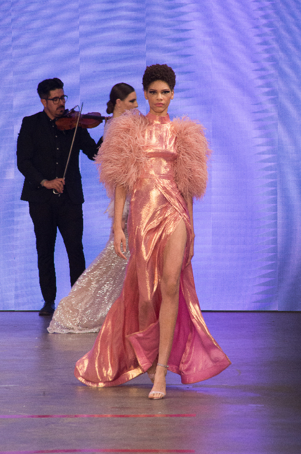 En la pasarela dominaron los vestidos de noche y atuendos de gala en telas suaves y ligeras que agregaron un movimiento acompasado que inconscientemente empodera a la mujer que lo viste sin perder ni un gramo de glamour y delicadeza.