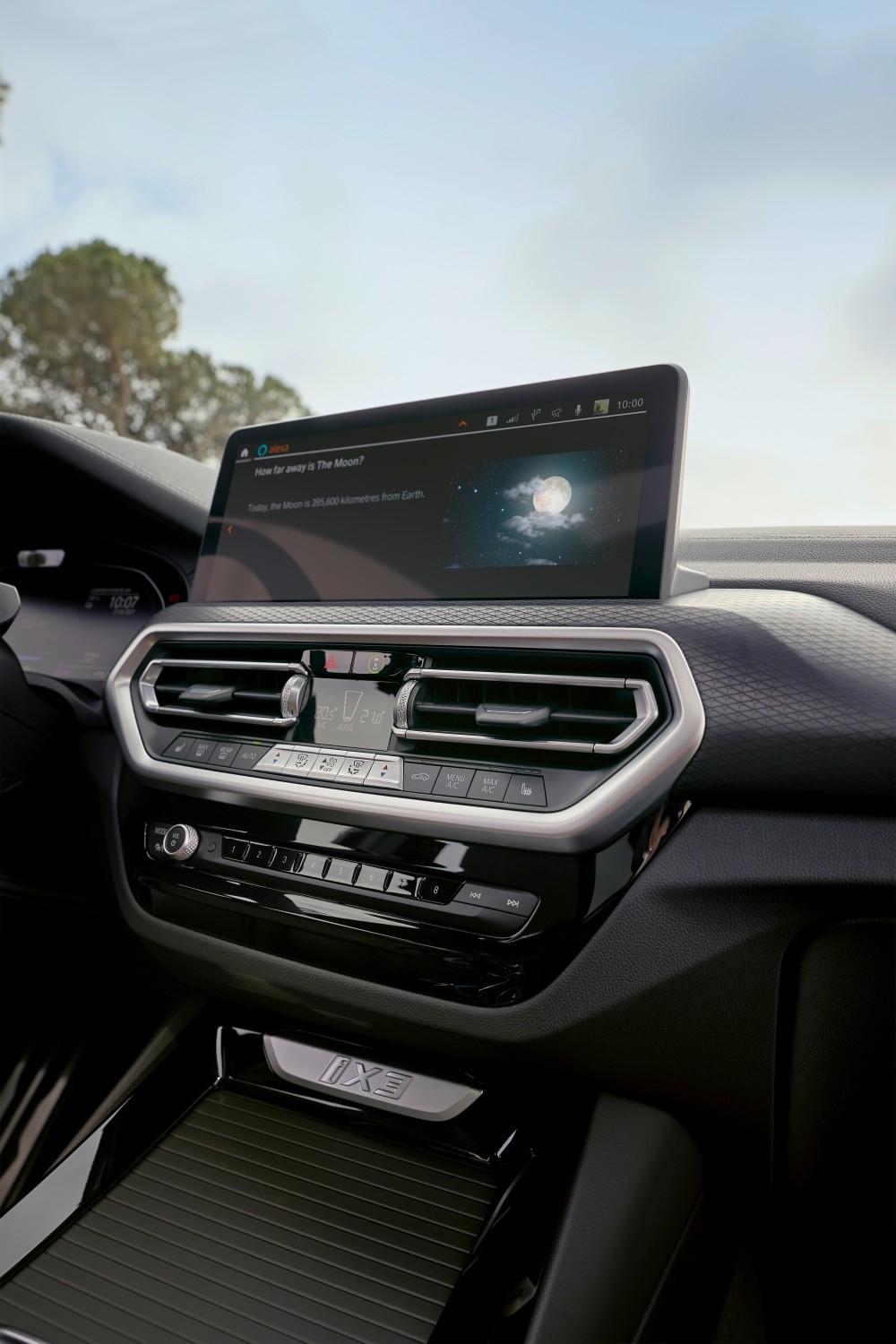 Dentro de la cabina, el iX3 mantiene el lujo y la comodidad que se esperan de un BMW. Proporciona un amplio espacio tanto para el conductor como para los pasajeros, además de materiales de primera calidad y tecnología avanzada.