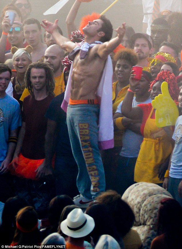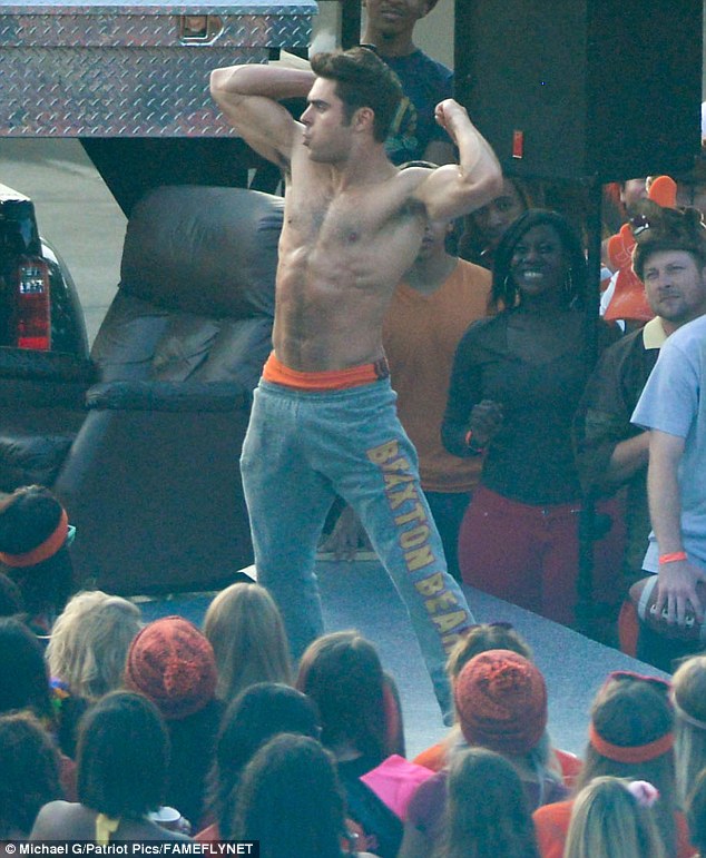 La escena se rodó en Georgia, Atlanta en la que también estuvo presente su co protagonista, Seth Rogen, él no quiso quedarse atrás y se quitó la camisa. Para hacer más cómica la situación y no sentirse apocado por Efron, éste se pintó líneas simulando músculos.