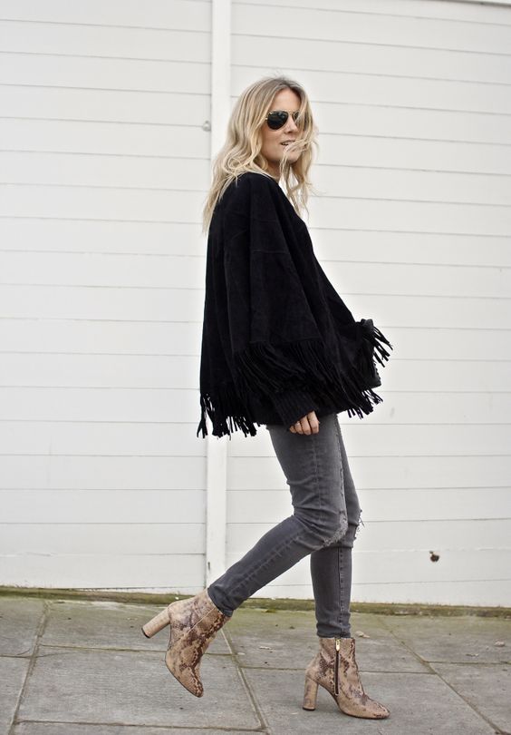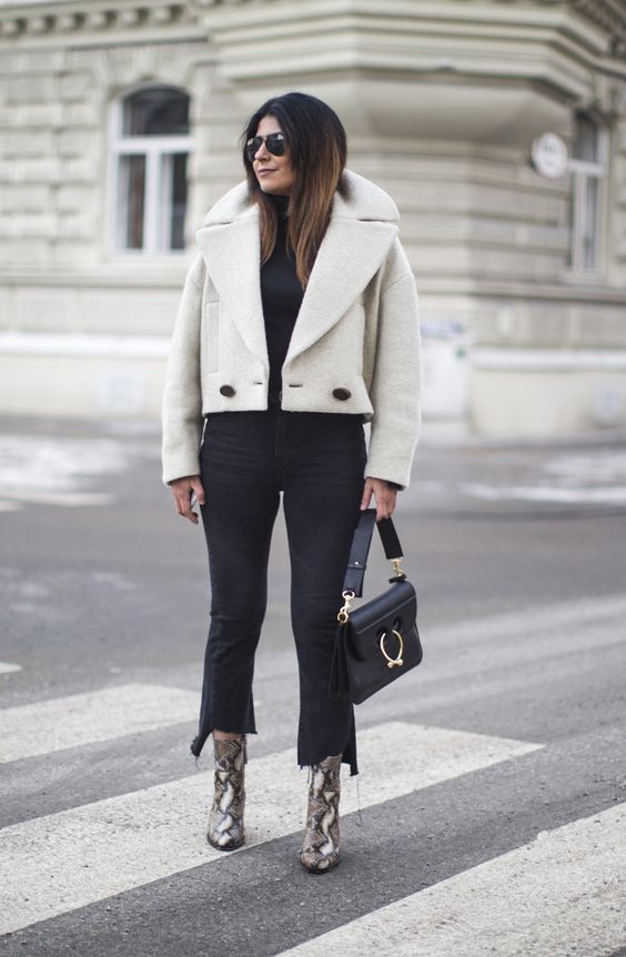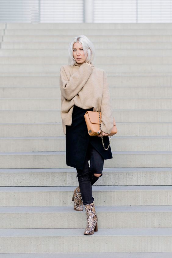 Para combinar tu outfit con el calzado simplemente debes de combinar este estampado sin caer en el exceso de color o de dramatismo. Los botines de serpiente ya son suficientemente llamativos por lo que conviene usarlos con moderación.