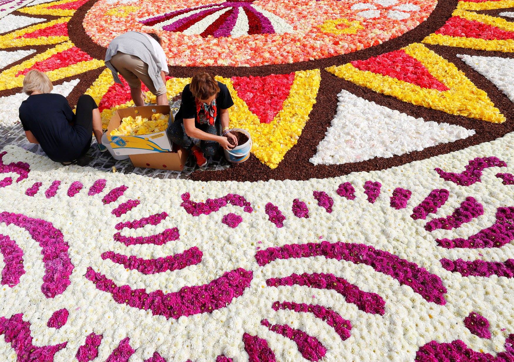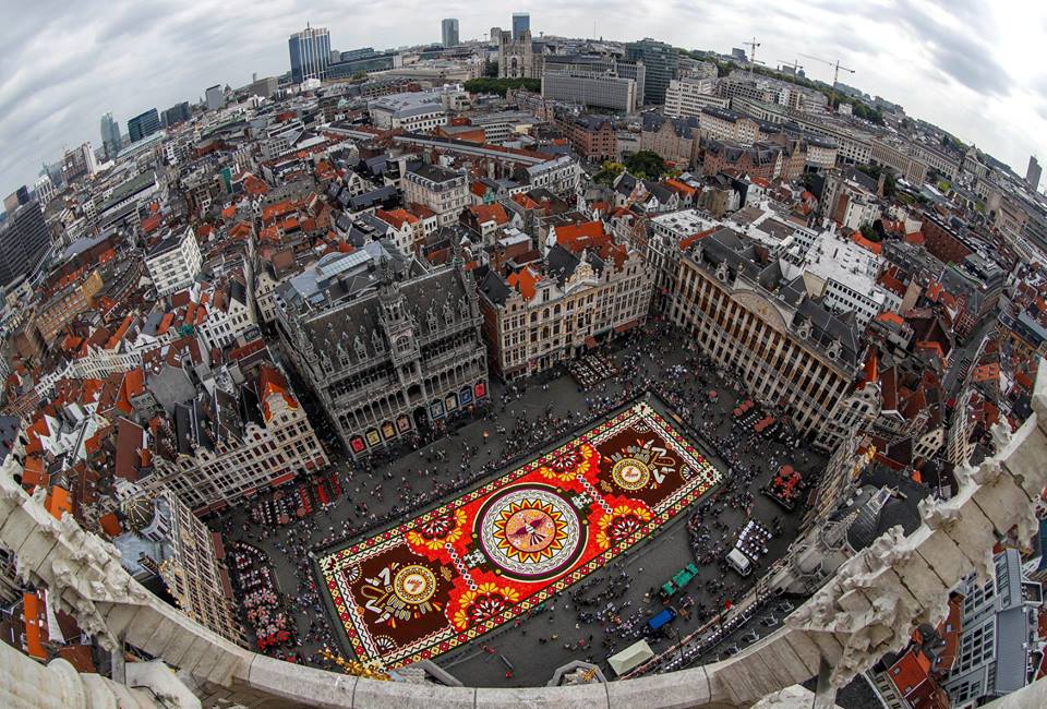 En agosto de cada dos años, en la plaza central de Bruselas se instala un tapete con más de 500 mil flores con 75 metros de longitud y 24 metros de ancho.
