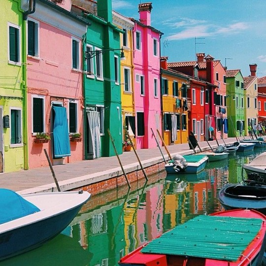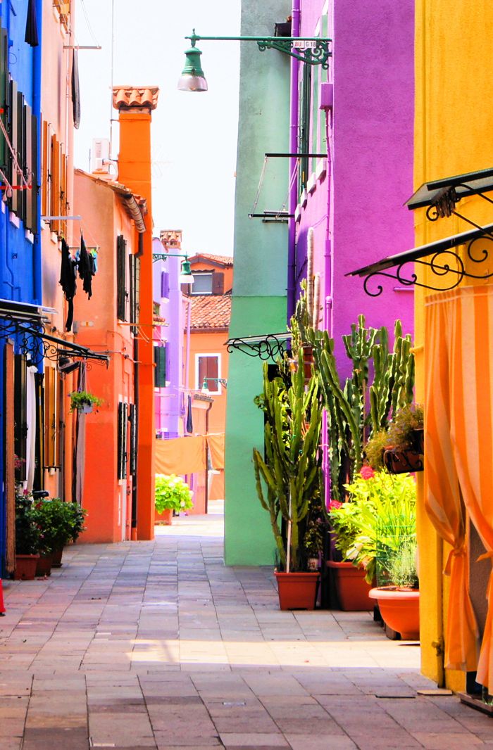 Situada a 7 kilómetros de Venecia, esta ciudad debe su popularidad a las casas de colores, las cuales fueron pintadas en tonos vivos para que los marineros distinguieran su destino aunque hubiera niebla.