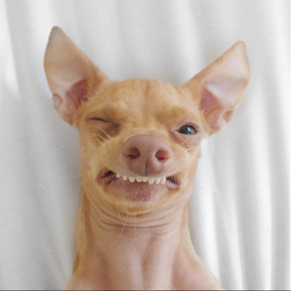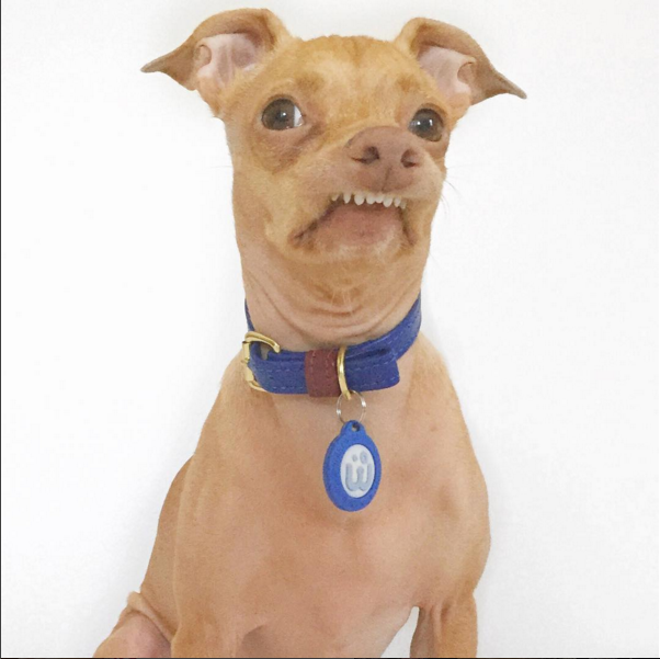 Sus casi 2 millones de seguidores de Instagram no pueden dejar de ver sus fotos. Se llama Tuna, es cruza de chihuahua y ha enamorado al mundo entero por la peculiar expresión en el hocico, pues nunca deja de enseñar la dentadura. Su imagen causó tal revuelo, que incluso es común verlo en memes y tiene una tienda online de productos con su imagen.