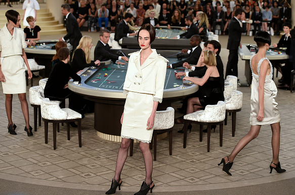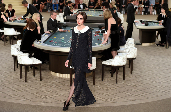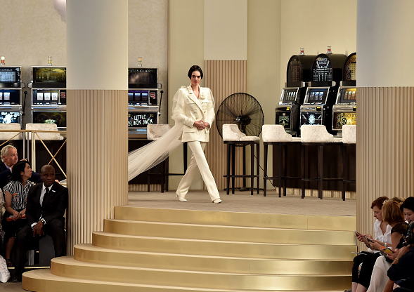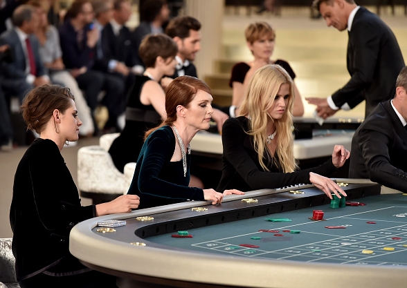 La pasarela se convirtió en un casino, pero nadie se imaginaba la gran sorpresa. Las celebs no fueron parte del front row sino de la instalación de la firma francesa. Kristen Stewart, Julianne Moore, Rita Ora, Vanessa Paradis y su hija Lily Rose Depp fueron las invitadas de lujo para ser jugadoras en el casino de Chanel.