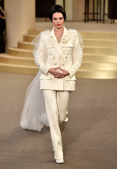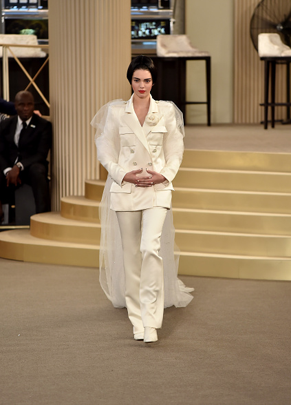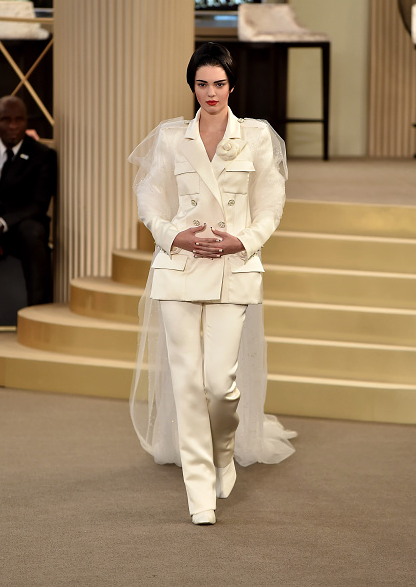 Sin embargo, quien se llevó la noche fue Kendall Jenner quien fue la modelo principal del desfile, pues terminó la colección al salir y lucir un vestido de novia muy atrevido por su corte clásico y hombreras plus size,