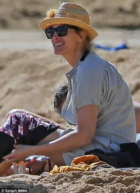Ahí, la estrella de Hollywood no perdió oportunidad de nadar, broncearse y relajarse en el mar, luciendo un bikini que complementó con una playera con estampados florales de la diseñadora Tory Burch, con los que demostró que a sus 48 años aún luce bella y con una figura estilizada, además de ser manteniendo la gran cabellera que tanto la ha caracterizado a través de su carrera.