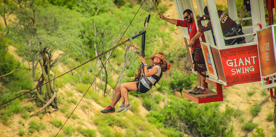En ‘Los Cabos Sling Swinger’, podrás saltar y columpiarte a 220 metros del suelo, por lo que esta actividad te llenará de adrenalina a ti y a tu acompañante.