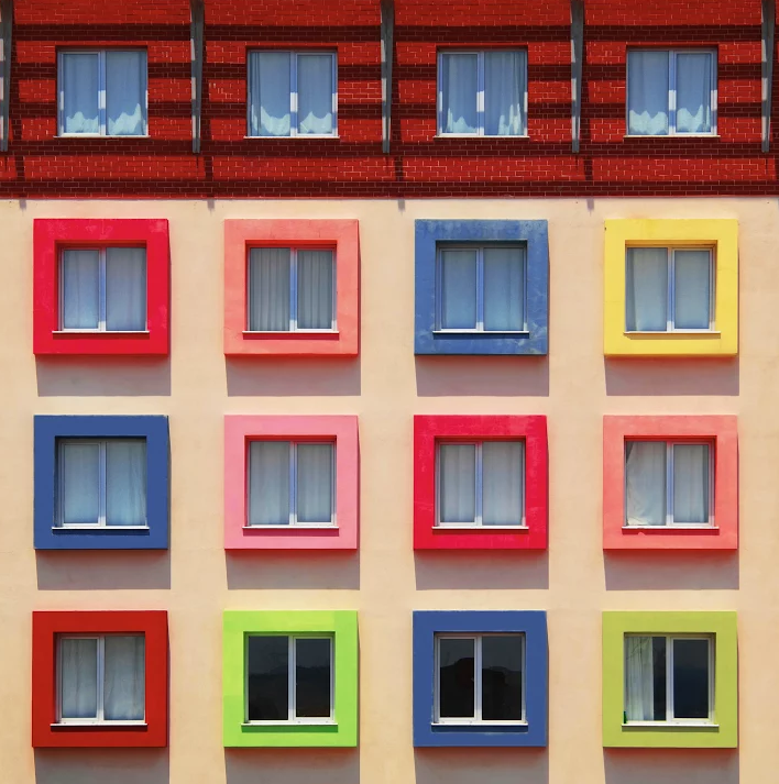 Las posibilidades son muchas, ya que esta tendencia crea su estilo con paneles exteriores o la aplicación de colores a mano alzada en accesorios pequeños. Los formatos de bloques proporcionan regularidad a las paletas experimentales de Colorama. Las proporciones y combinaciones de colores desafían la percepción visual y distorsionan figuras sencillas en formas interesantes.