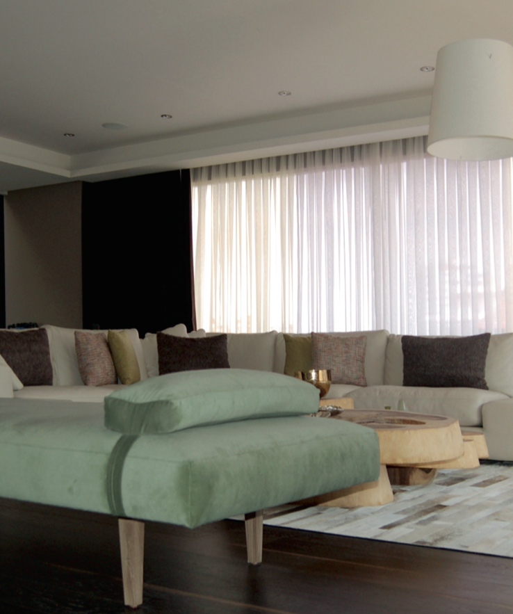 Los colores neutrales forman la base de un ambiente armonioso y usando diferentes acabados en las superficies, desde maderas en bruto hasta metálicos resplandecientes, agregan detalles de lujo, así como reflejos de luz de espejo y sutiles movimientos de color alrededor de las estructuras de marcos abiertos.