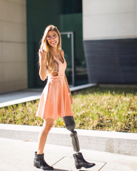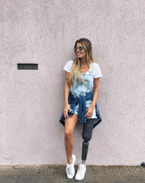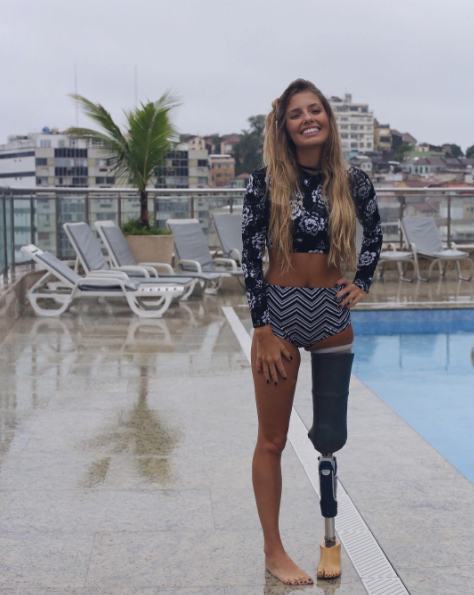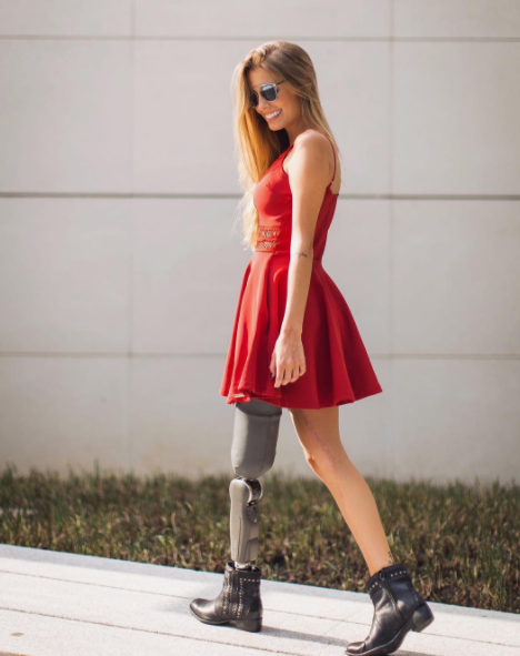 Pero eso no le impidió seguir con su carrera de modelaje, hoy por hoy la guapa brasileña muestra con orgullo la prótesis que le permite caminar y realizar todas las actividades que conlleva su carrera.