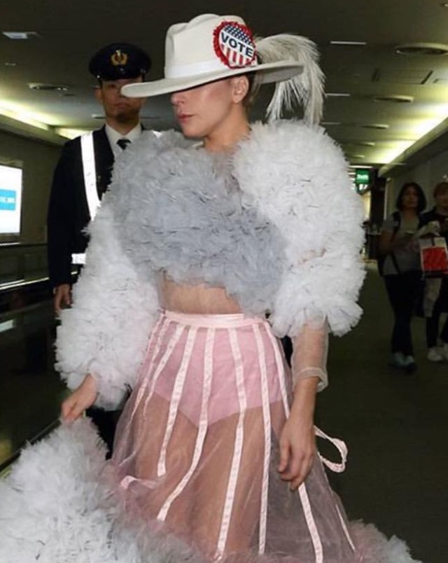 Uno de los más comentados, fue el que usó al interpretar el tema John Wayne, conformado por un jumpsuit de charol negro de Saint Laurent, plataformas y un sombrero valuado en… ¡un millón de dólares!