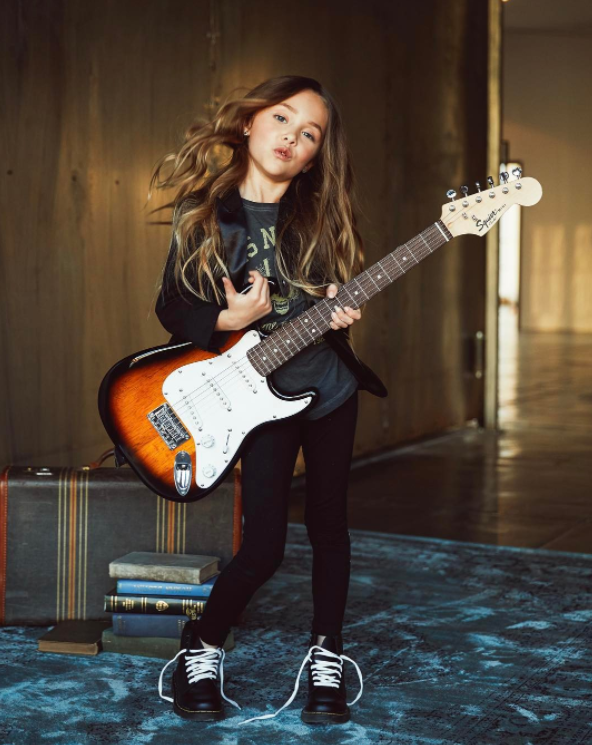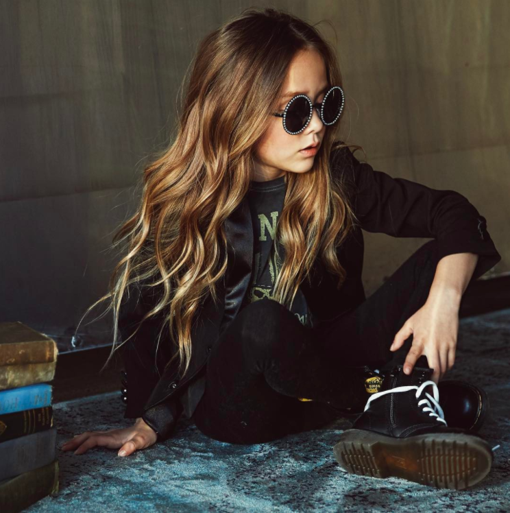 Esta mini modelo ha cautivado a sus casi 18 mil seguidores en Instagram por su estilo rock glam. Denim rotos, chamarras noventeras, botas Dr. Martens, son algunos de los básicos de esta mini fashionista.