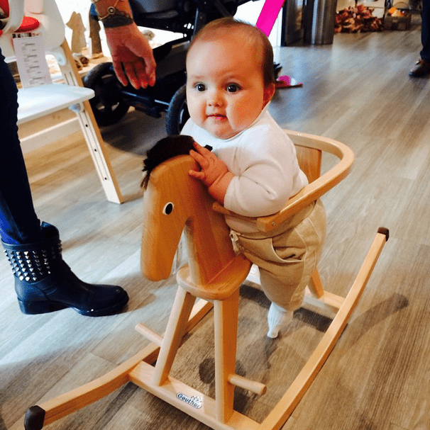 La pequeña también posee los mejores juguetes en el mercado e incluso tiene un mini carrito de carreras con el que seguro adquirirá el gusto por la Formula 1 de su abuelo y su mamá