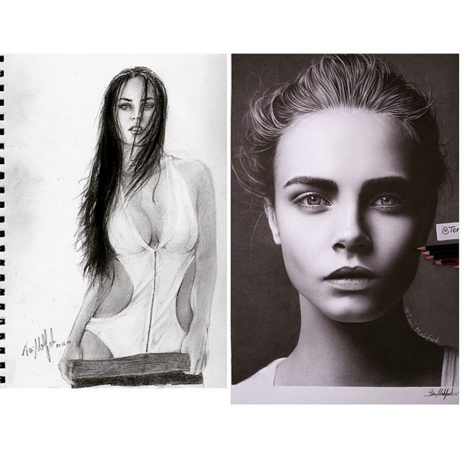 Los retratos de las personalidades que ha hecho van desde modelos como Cara Delevingne y Kendall Jenner, pero tiene un amor profundo hacia Rihanna y Megan Fox, además de Leonardo DiCaprio y Kim Kardashian.