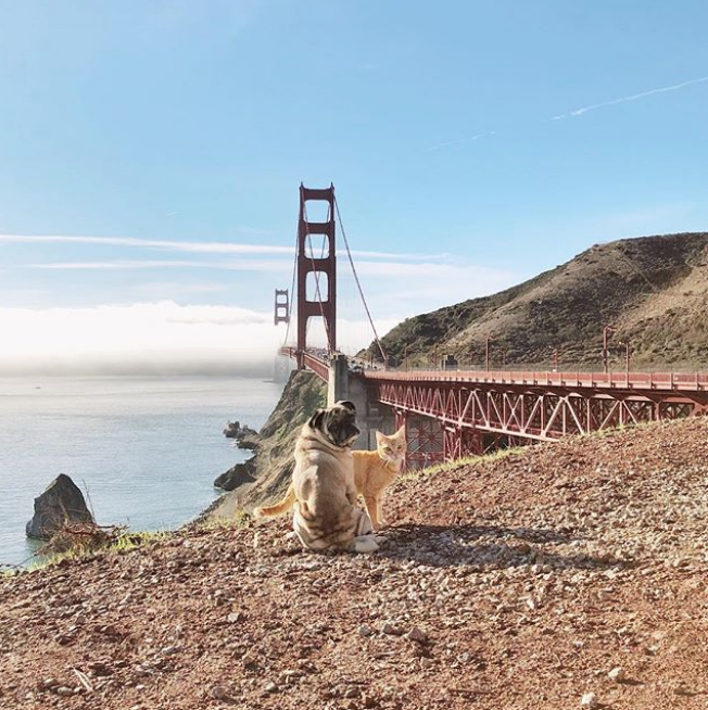 Miles de personas acostumbran realizar viajes con sus mascotas, pero esta pareja de «amigos» está causando sensación en Instagram.