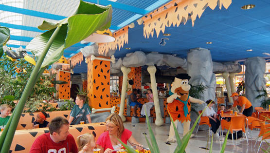 Si alguna vez has soñado con comer sobre mesas y sillas de piedra, así como entre dinosaurios y tus personajes favoritos… ¡Este lugar te encantará!