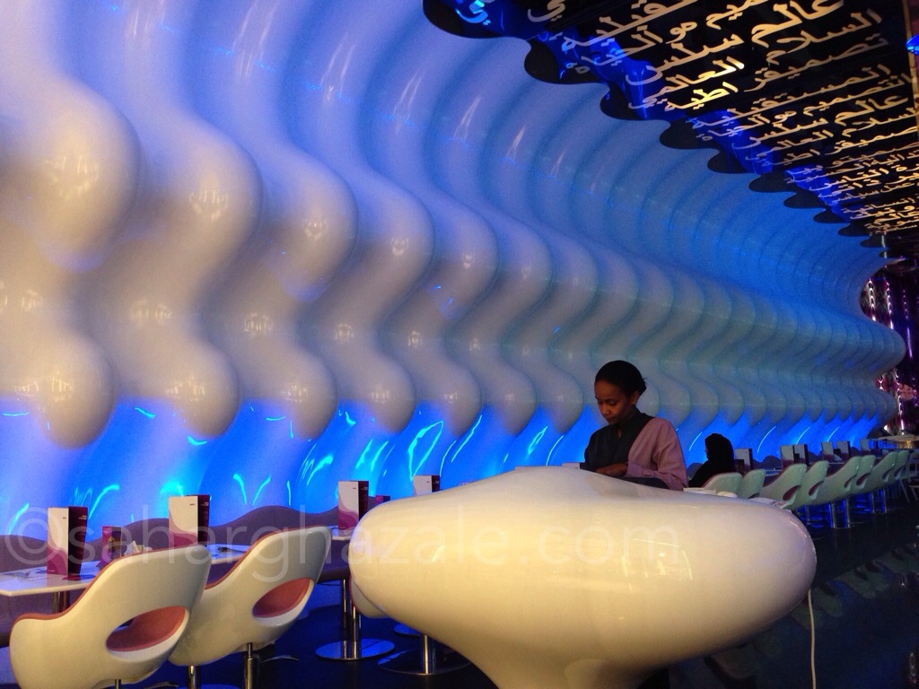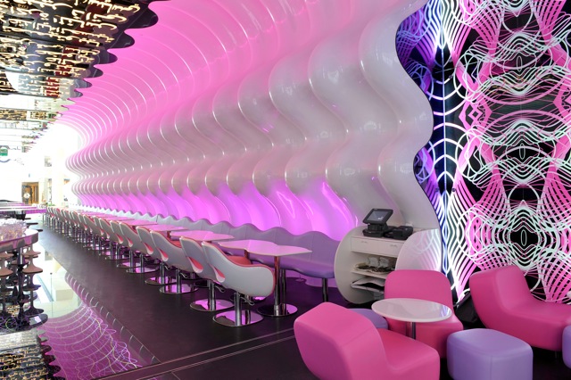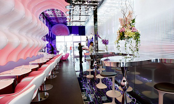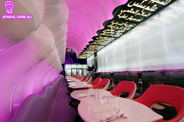 Karim Rashid, creador del restaurante aseguró: “Mi intención fue diseñar un espacio único para que el Dubái Mall se vuelva una referencia icónica no sólo en Dubái sino también en el resto del mundo”.