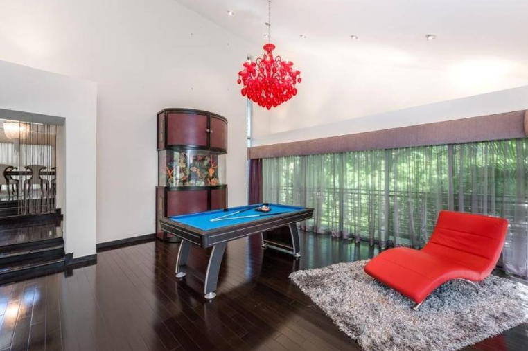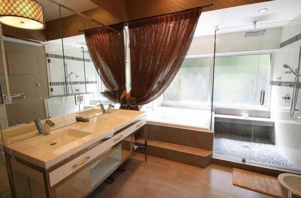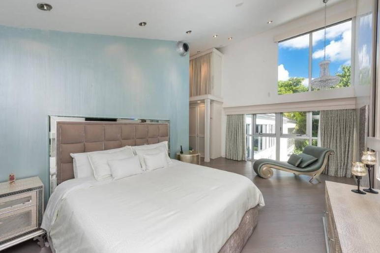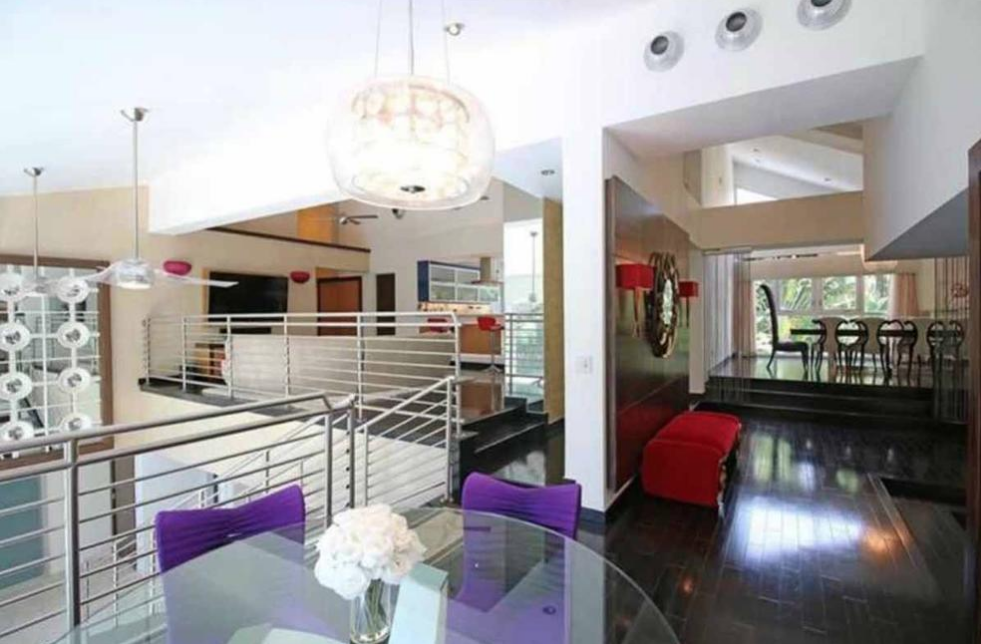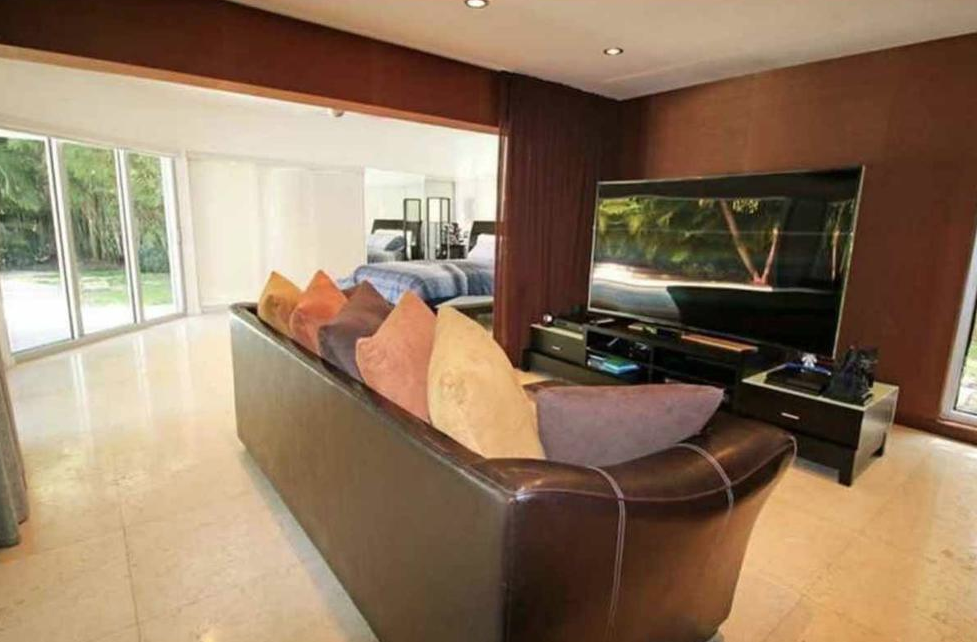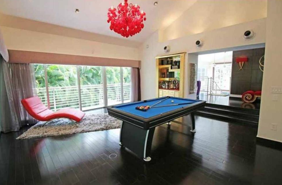 La vivienda fue construida en el año 197y es de 5,789 pies cuadrados (538 metros cuadrados) y traza moderna dispone de cuatro dormitorios y cuatro cuartos de baño, techos altos y amplios ventanales, un estudio de grabación, un billar y un bar privado.