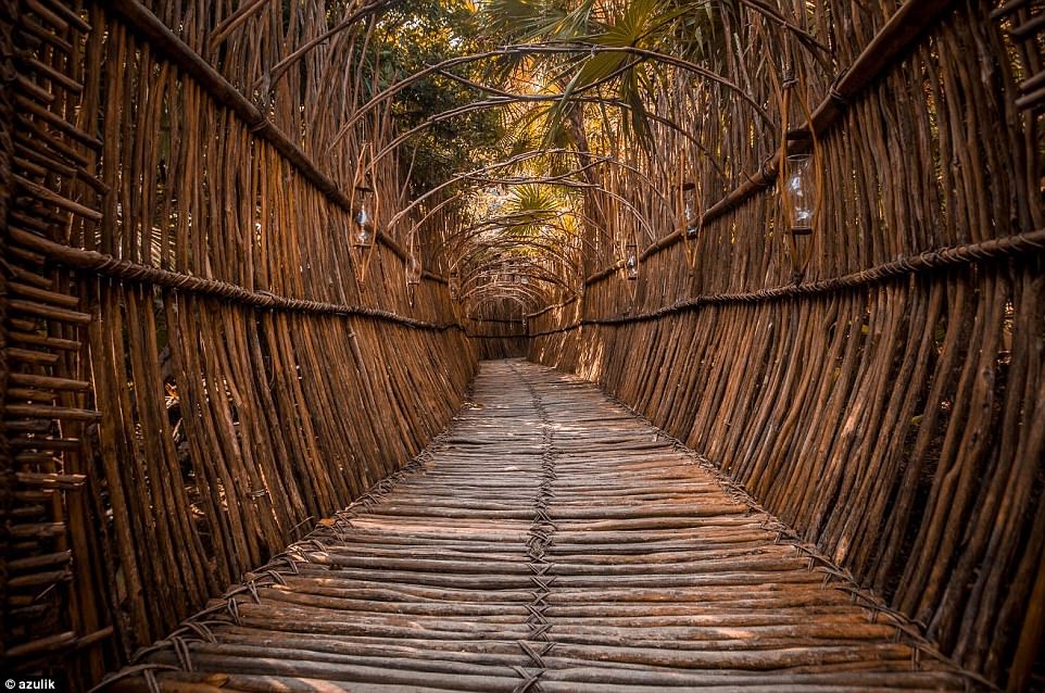 Sus instalaciones invitan a la relajación, pues está conformado por 36 hermosas habitaciones tipo cabaña, terrazas panorámicas, restaurantes y bares, construidos completamente con ramas, troncos, palma, bambú y pisos de madera, que por la noche destacan por su iluminación con velas.