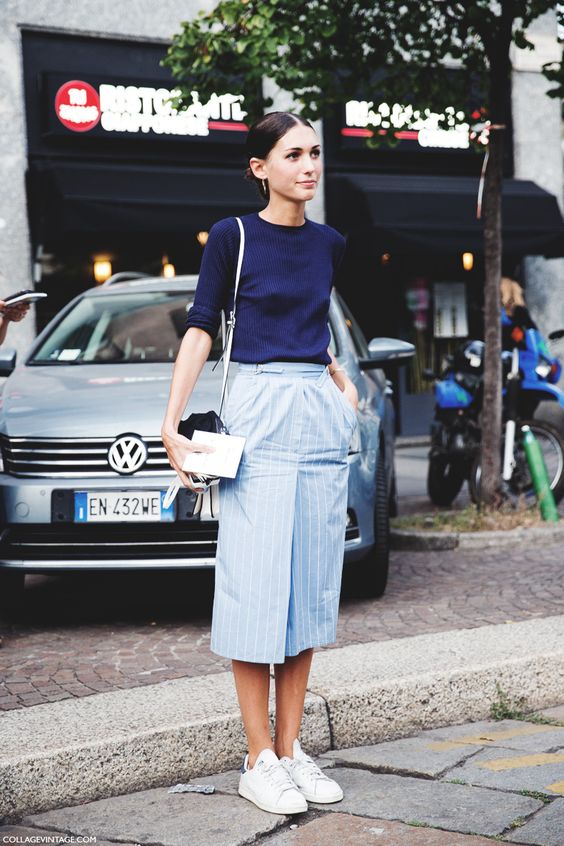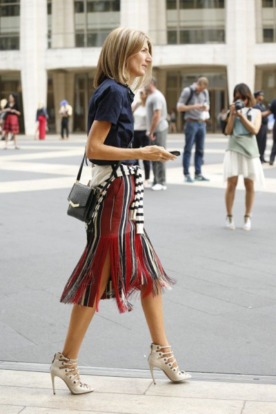 Aún quedan días de verano así que sí, aún se pueden usar faldas, de hecho cuando empiece el otoño también puedes hacerlo, sólo asegúrate de que sean midi o maxi. Pero si quieres sacarle en realidad un buen partido a tus piernas, entonces lo que debes hacer es vestir una falda de líneas.