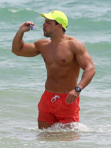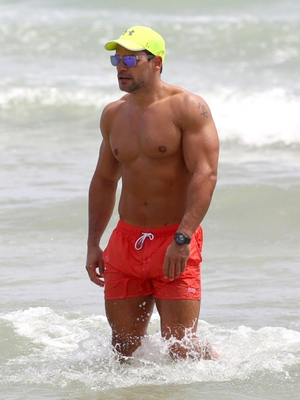 Con un look súper deportivo, gafas de sol azules, gorra de tipo béisbol y un traje de baño anaranjado neón, el guapo chileno quería pasar desapercibido pero con ese cuerpo ¿quién no voltearía a verlo?