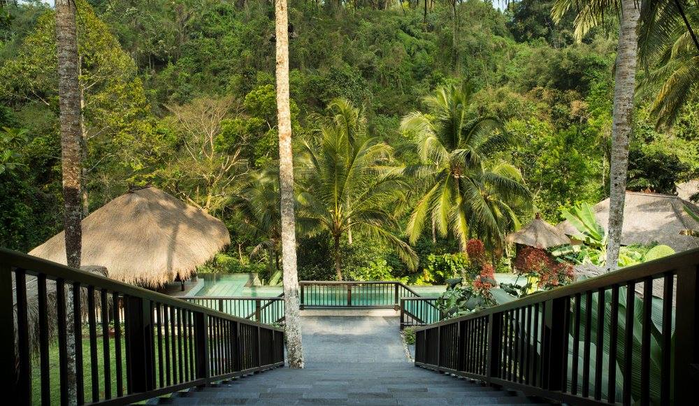 El lujoso Hanging Gardens goza de vistas al río Ayung y ofrece villas con piscina privada al borde infinito.