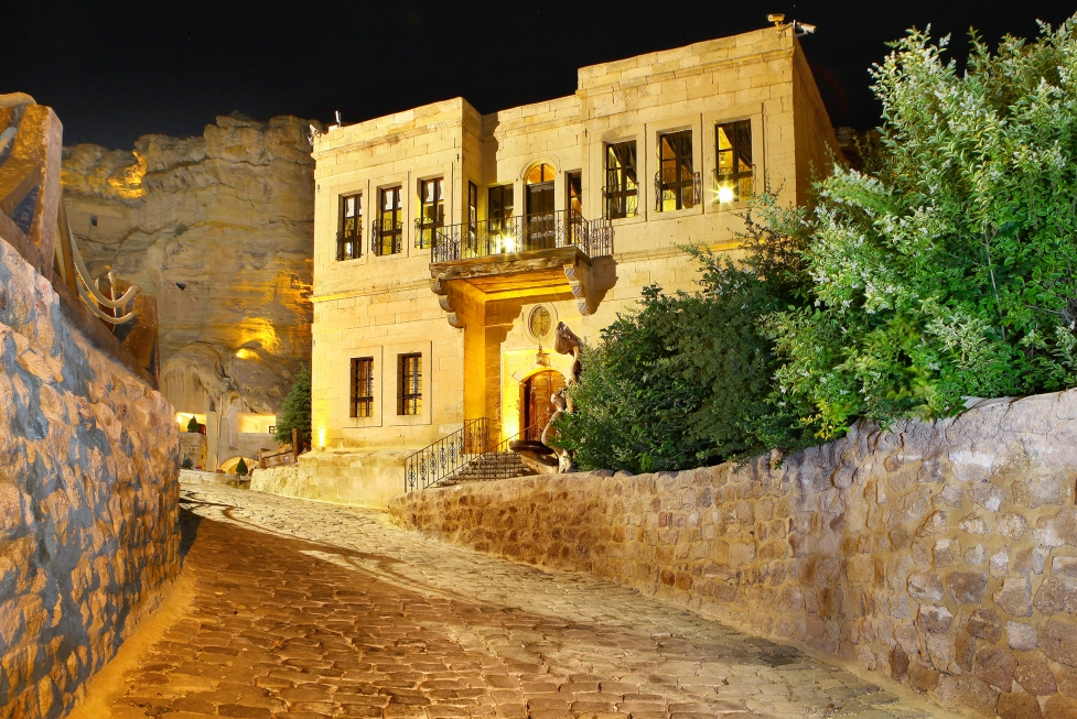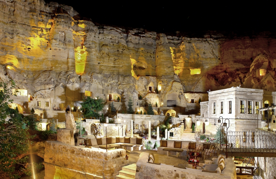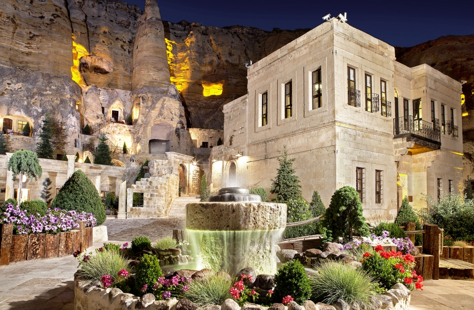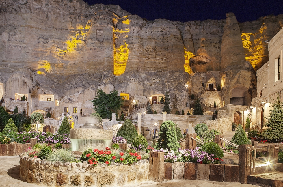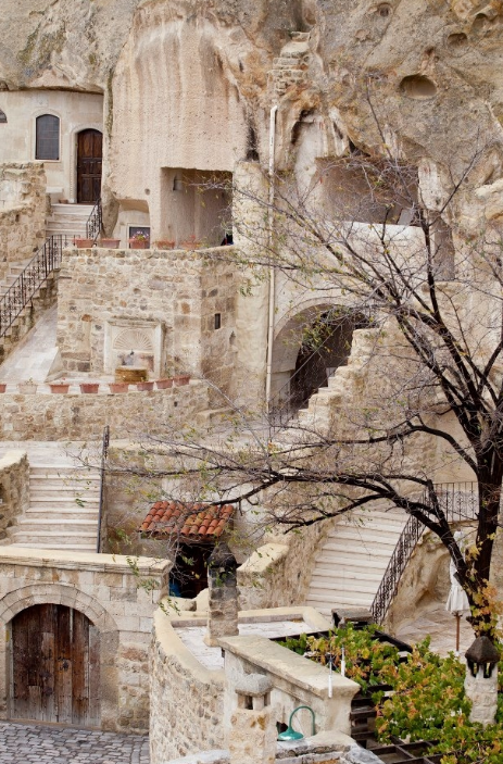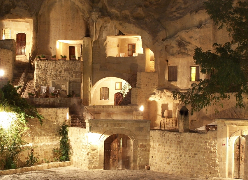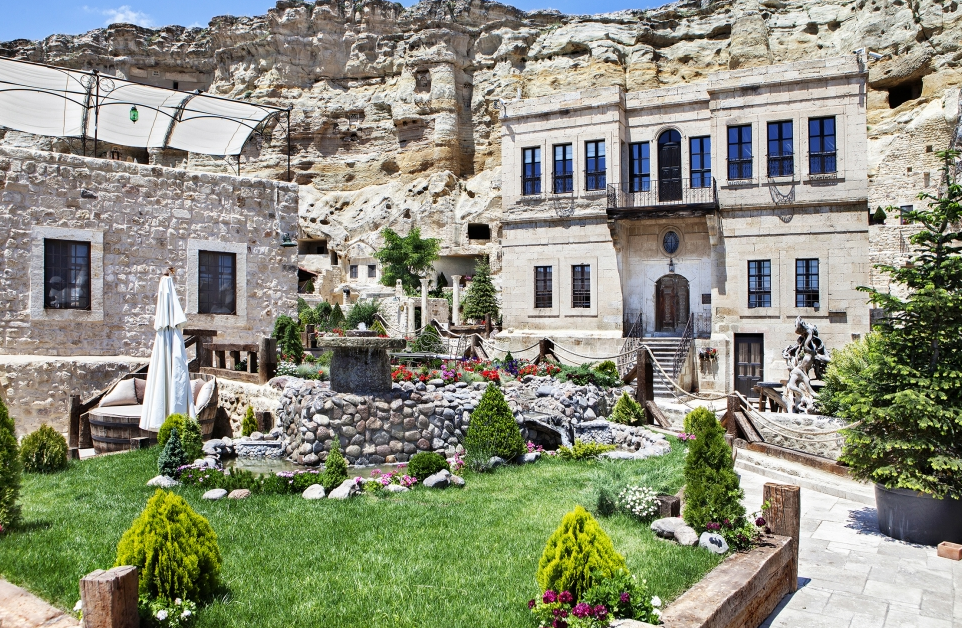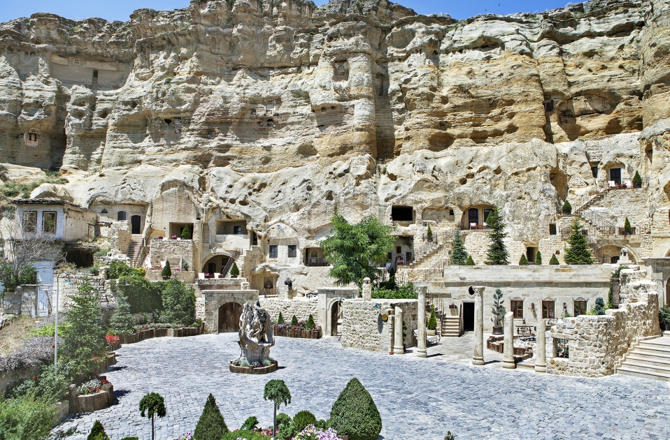 En el paisaje de las chimeneas de hadas de Capadocia, en el pueblo antiguo de Urgup, un hotel exclusivo excavado en el acantilado de la montaña, Yunak Evleri. El hotel es un complex de 7 casas de cueva y 40 habitaciones las cuales datan de los siglos V y VI, y una mansión griega del siglo XIX. Yunak Evleri es un hotel de inspiración, una base ideal para explorar las ciudades subterráneas elaboradas de Capadocia, las iglesias cavernas escondidas y el terreno rocoso encantador.