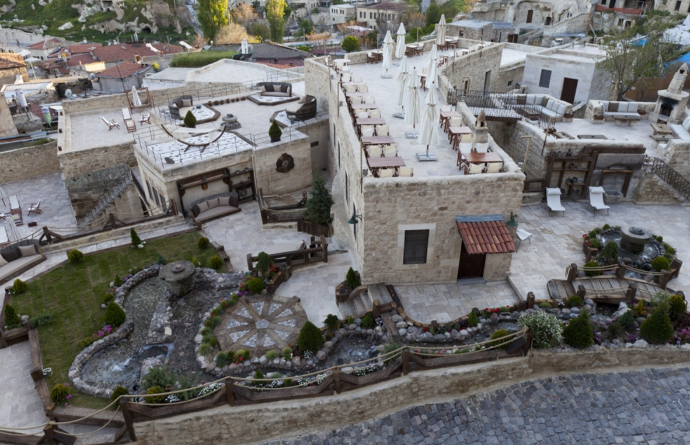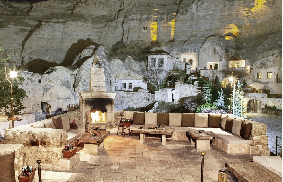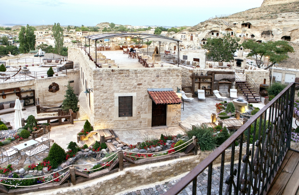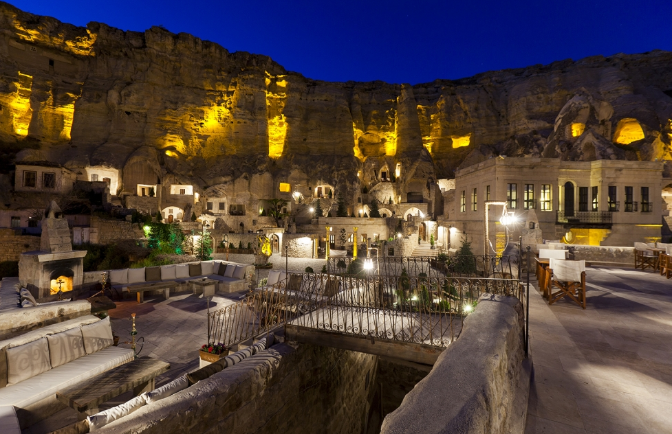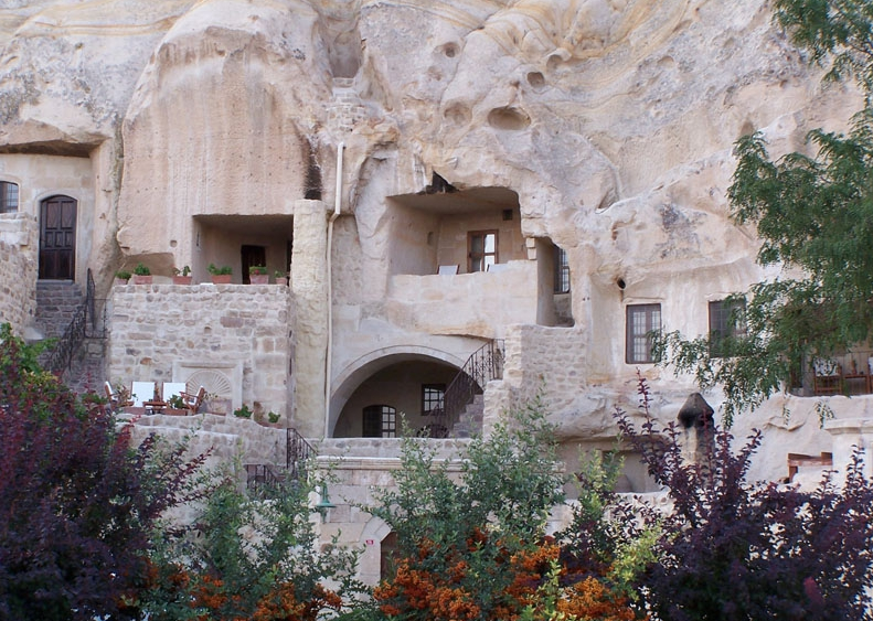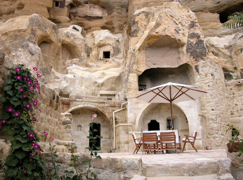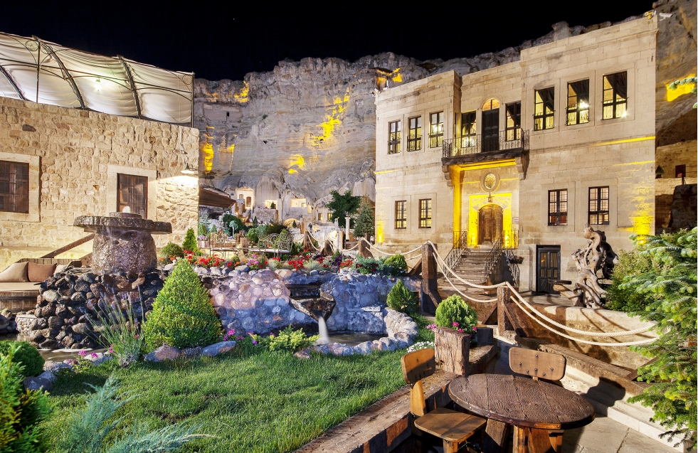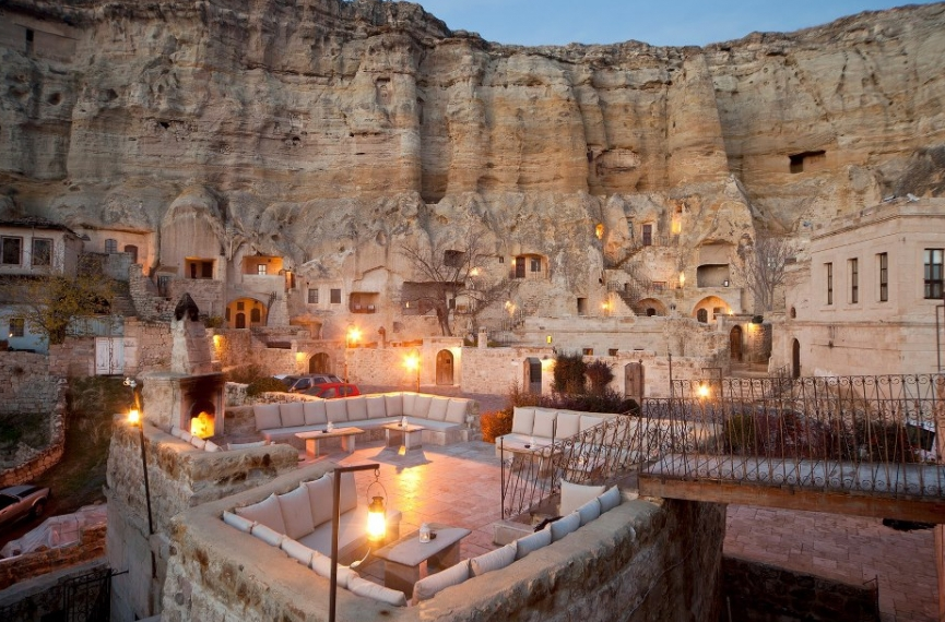 En el paisaje de las chimeneas de hadas de Capadocia, en el pueblo antiguo de Urgup, un hotel exclusivo excavado en el acantilado de la montaña, Yunak Evleri. El hotel es un complex de 7 casas de cueva y 40 habitaciones las cuales datan de los siglos V y VI, y una mansión griega del siglo XIX. Yunak Evleri es un hotel de inspiración, una base ideal para explorar las ciudades subterráneas elaboradas de Capadocia, las iglesias cavernas escondidas y el terreno rocoso encantador.
