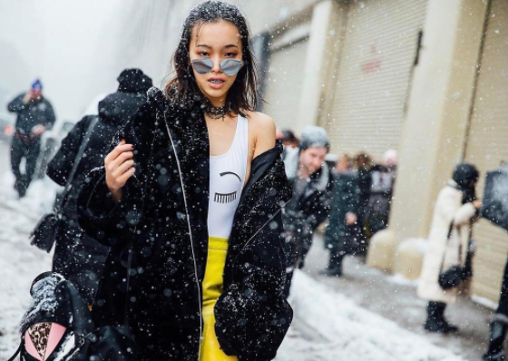Un highlight sumamente espectacular fue precisamente la tormenta de nieve que protagonizó el street style durante el fin de semana. Las it girls tuvieron que abrigarse más de lo normal y literalmente arriesgar el físico para poder asistir a las esperadas pasarelas.