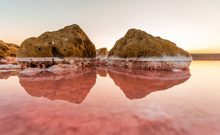 El color rojo-rosado es debido a la especie de alga conocida como Dunaliella, la cual se genera en agua salada y se multiplica con mucha rapidez, así que ésta planta marina la principal creadora de tan hermoso espectáculo.